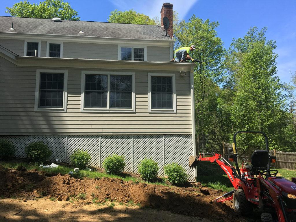With the use of our trench digger and our laser transit you will never be questioning if an underground drain pipe is installed and pitched properly so that all rain water is flowing away from your foundation. NJ Home Maintenance Services does the job once and correctly every time.